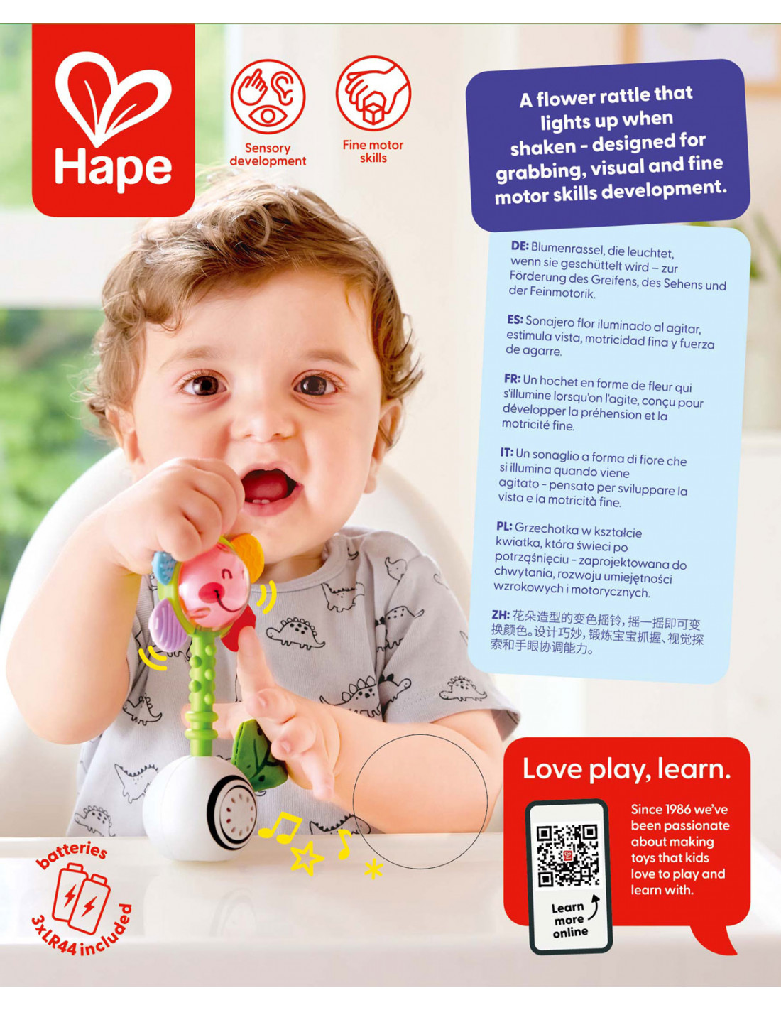Sonajero de flor agita y brilla