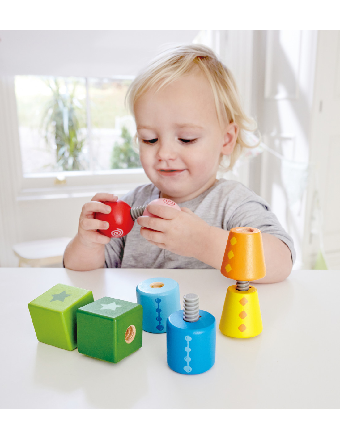 ¡Con estas formas enroscables, las piezas no podrán venirse abajo! De este modo, los peques tendrán mayor facilidad para construir a su antojo sin que se derrumbe su obra. Además, ¡ordenar las piezas en función de su forma estimulará exponencialmente su aprendizaje!