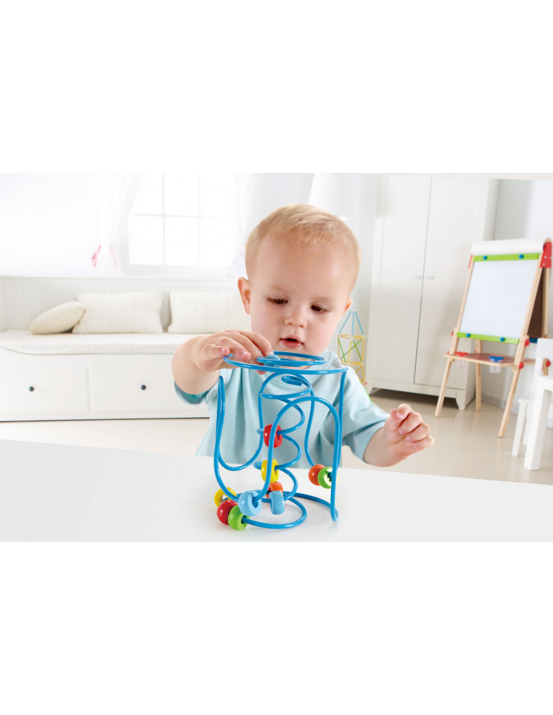 Zig, zag, ¡zoom! ¡Este laberinto invita a los bebés a vivir una experiencia increíble recorriendo sus curvas a toda velocidad! Podrán agrupar todas las bolas para que hagan el recorrido juntas o separarlas.