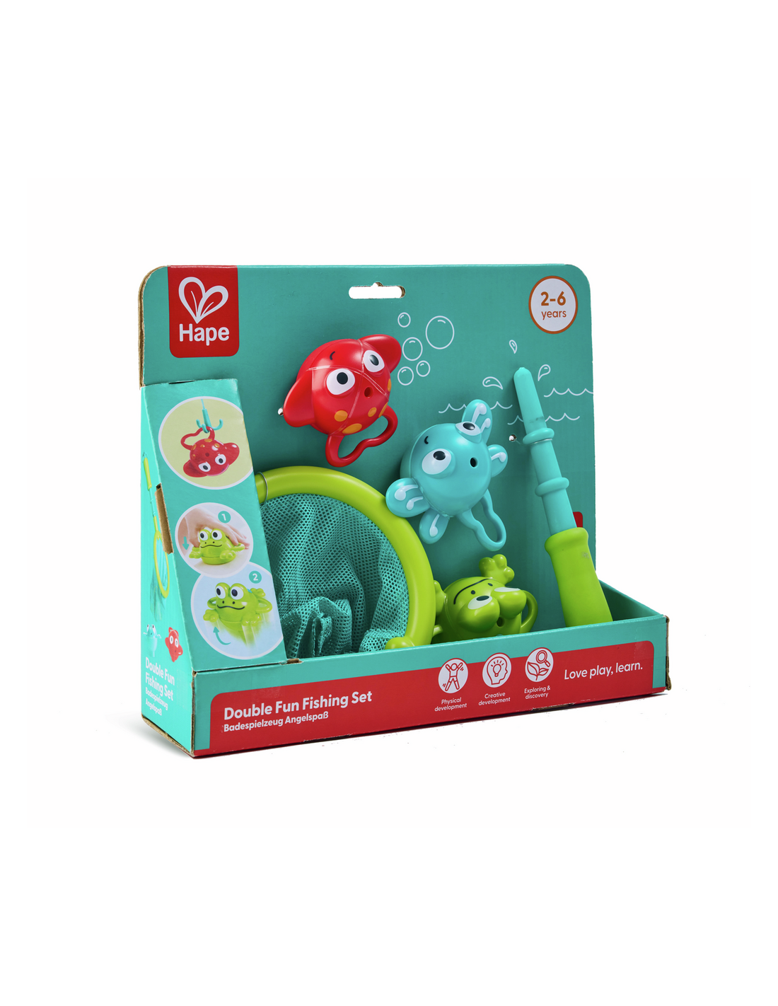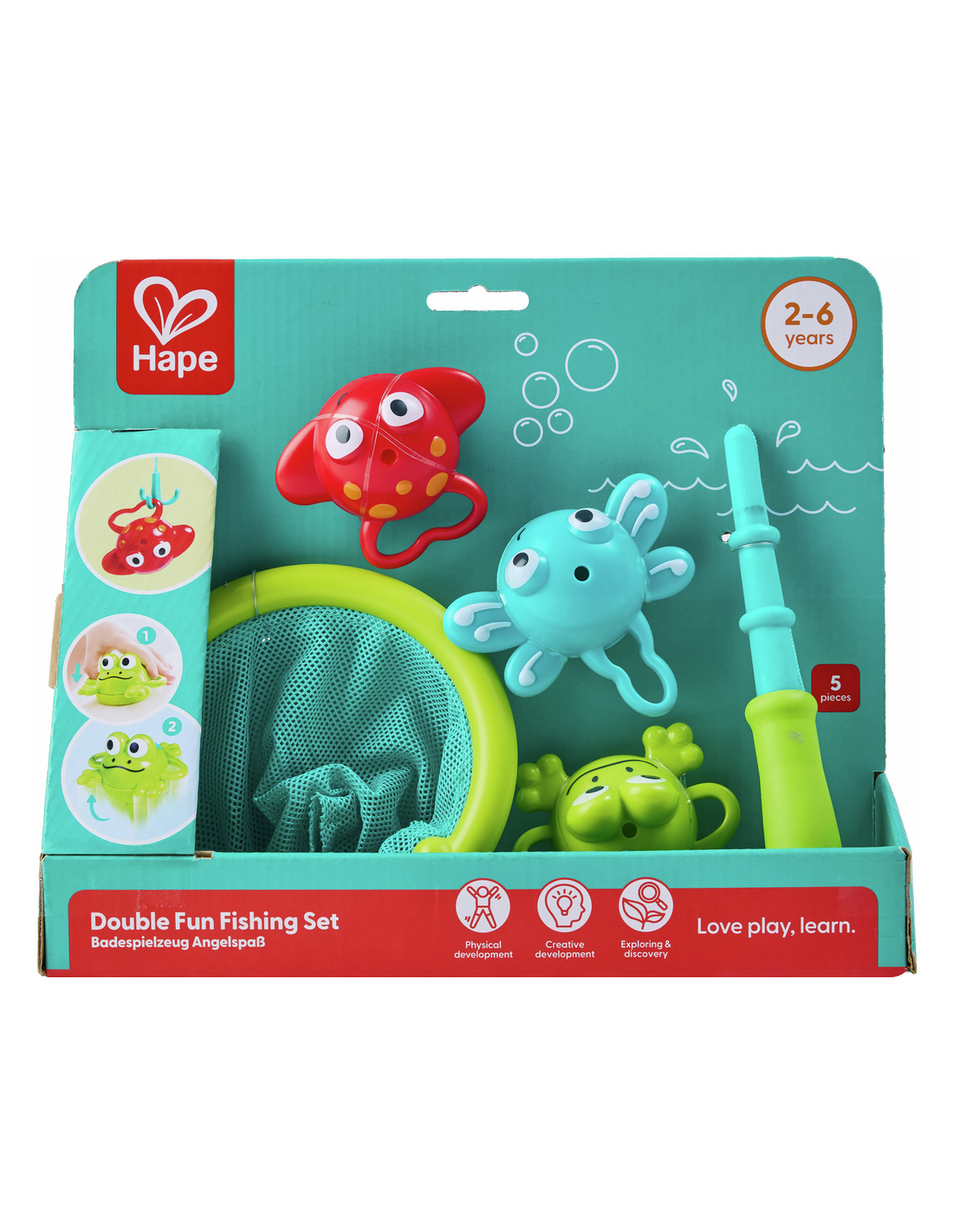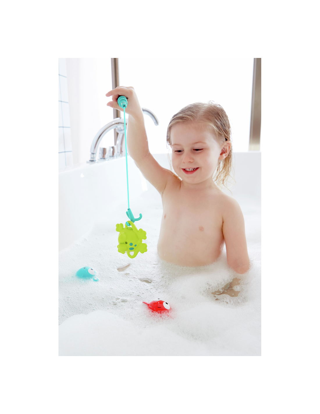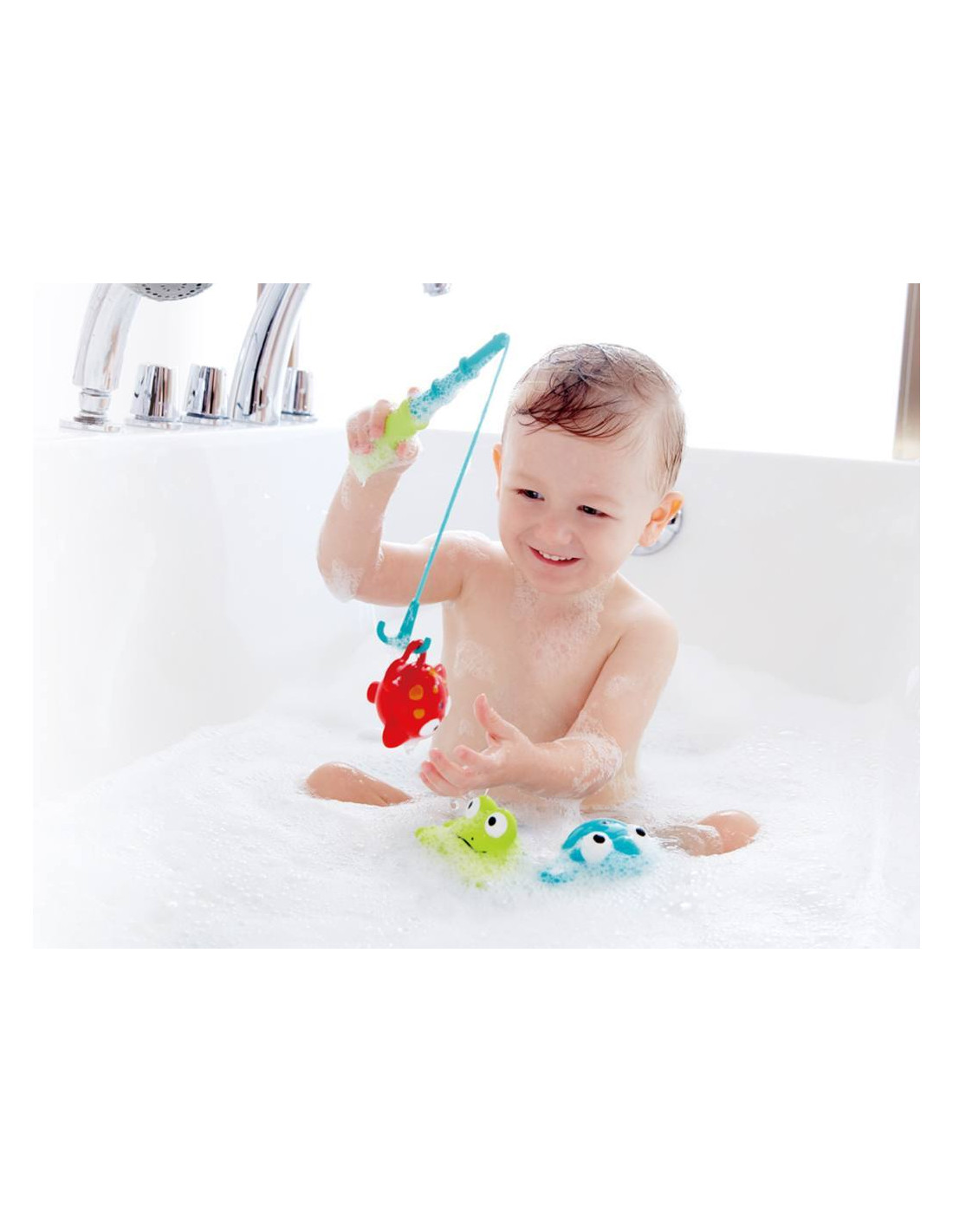 - Diversión en la bañera: Pescar con la red o la caña.